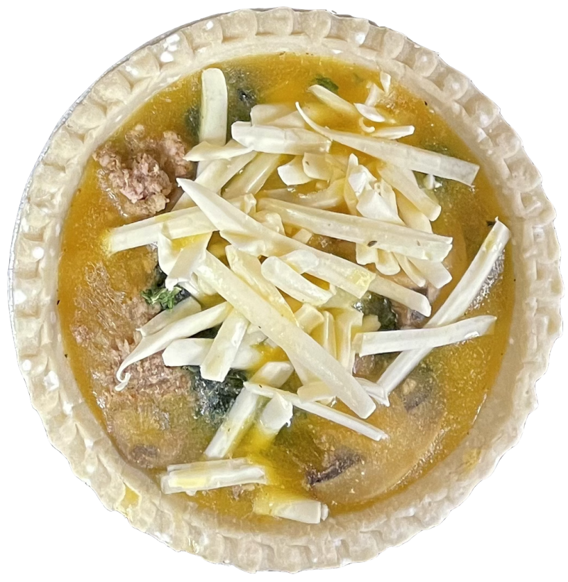 *Quiches come frozen, and UNBAKED. Allow 45 minutes of bake time for a fully thawed quiche