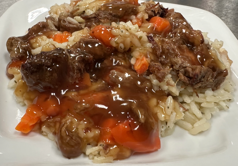 seasoned rice, diced carrots & shredded brisket, topped with gravy