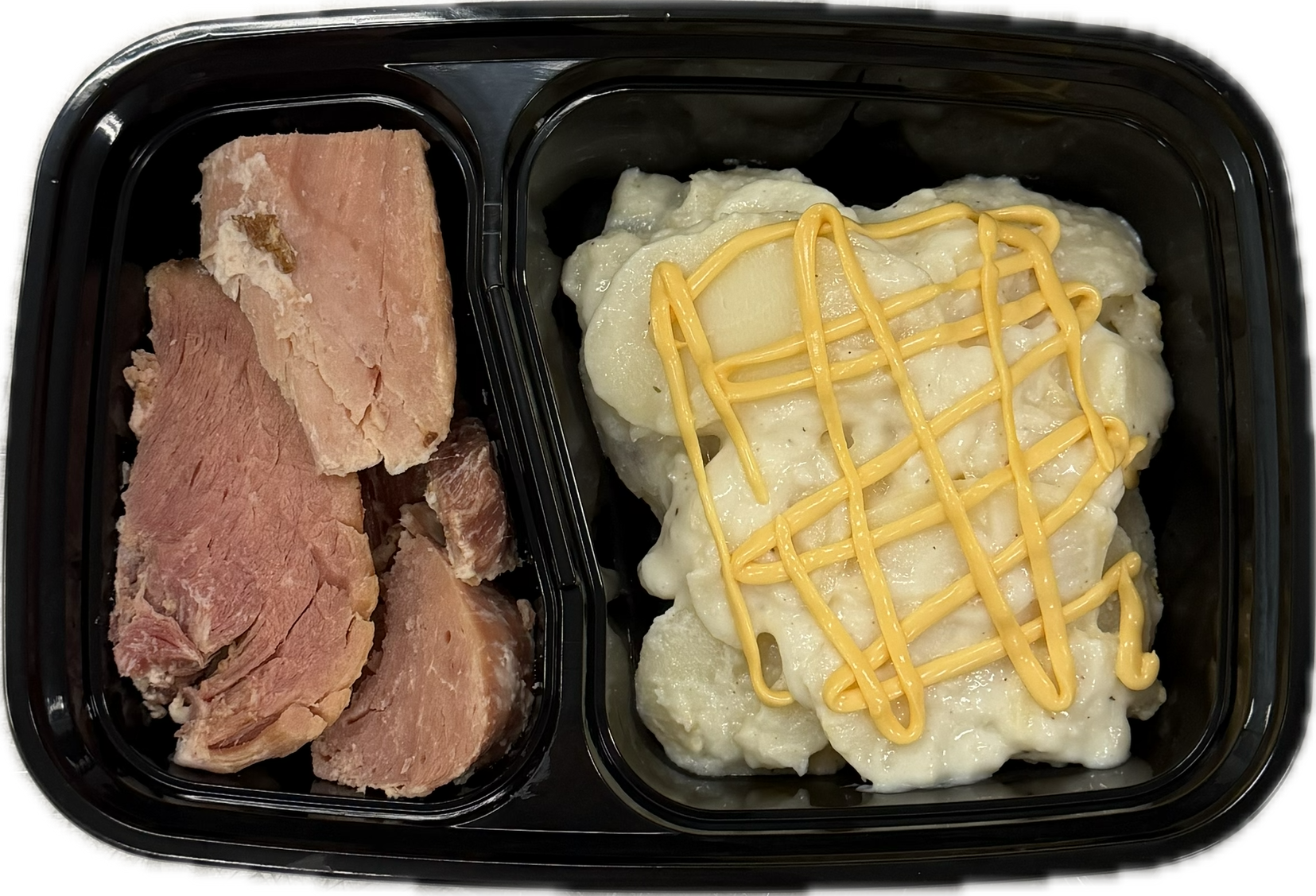 1/4 pound of our baked ham + homemade Scalloped Potatoes